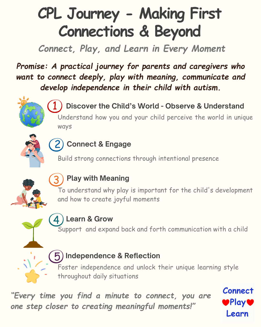 To feel prepared in creating meaningful connections, play opportunities, expanding communication and encouraging a child’s independence